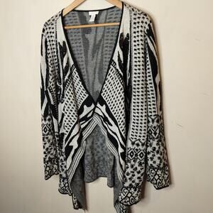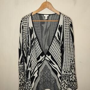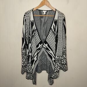 Chico's Cardigan Sequin Embellished Black WhiteOpen Front