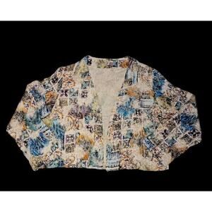 Chicos Cardigan Silk Blend Open Front Multicolor Jacket Sz 2