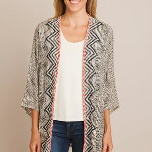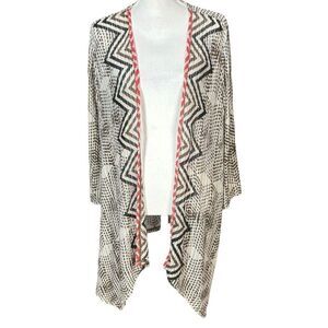 Chicos Cardigan Size XL Sweater Vest Duster Waterfall Brown Boho Long Abstract