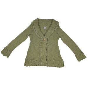 Chicos Cardigan Sweater Green Chunky Collar Lace Wool Blend Size 0 Small