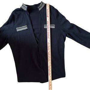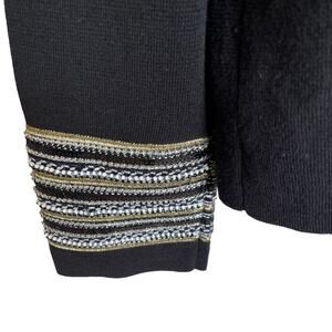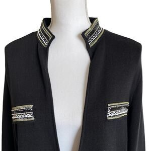 Chico's Cardigan Sweater Heidi Size L/XL Black Heidi Embellished Beaded Military
