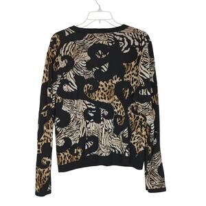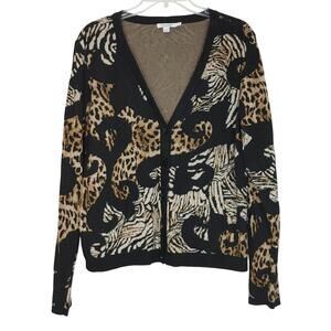 Chico's Cardigan Sweater Jacquard Animal Print Brown Black Womens Size 3