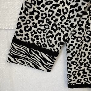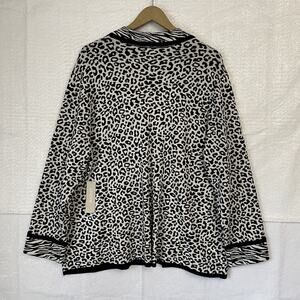 Chico’s Cardigan Sweater Size 4 XXL 2X Black Ecru Animal Open Front Blazer NEW
