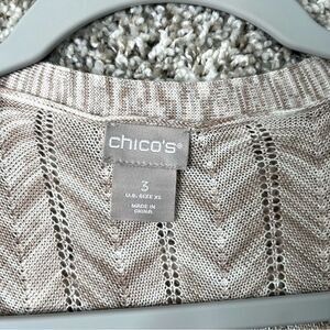 Chico’s Cardigan Sweater Womens 3 / XL / 16 Neutral Chevron Patterned Open Front