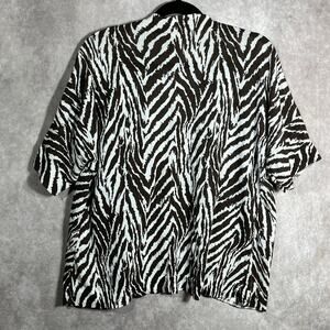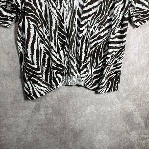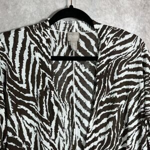 Chico's Cardigan Sweater Womens Size 2 US Large Brown White Zebra Striped Open