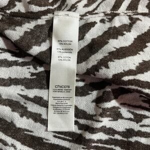 Chico's Cardigan Sweater Womens Size 2 US Large Brown White Zebra Striped Open Lightweight