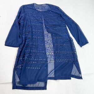 Chico's Cardigan Sweater Women Large Eyelet Embroidered Sheer Long New Navy