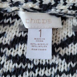 Chico’s Cardigan Textured Knit Sweater w/ Fringe, Black/White, Women’s Plus Sz 1