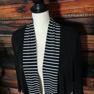 Chico's Cardigan Top Size 3 US XL Petite Open Front Lace Black White Striped