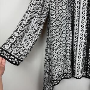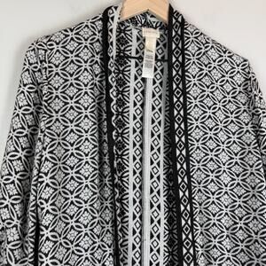 Chico's Cardigan Women 0 US S White Black Geo Print Asymmetrical Hem Open Topper