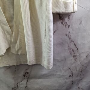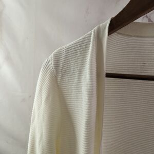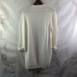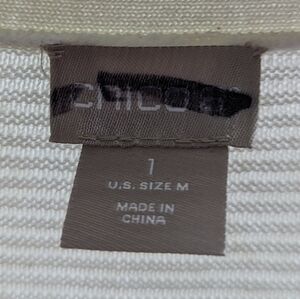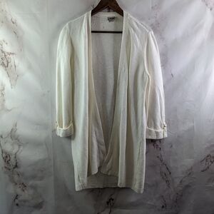 Chicos Cardigan Women 1 MediumWhite Roll Up Sweater Puff Sleeve Wrap Ruana Shrug