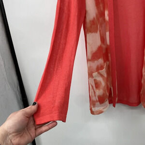 Chico's Cardigan Women Sz 2 Large Coral Orange Watercolor Chiffon Open Front