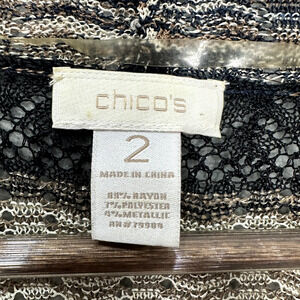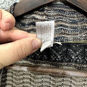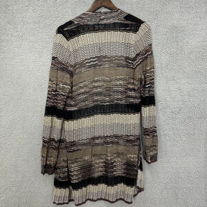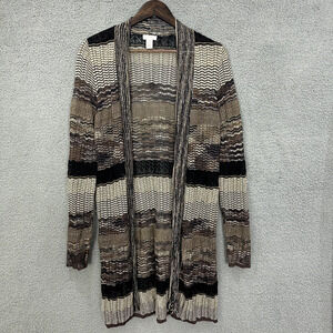 Chicos Cardigan Womens 2 Medium Brown Metallic Weave Open Front Lightweight Boho