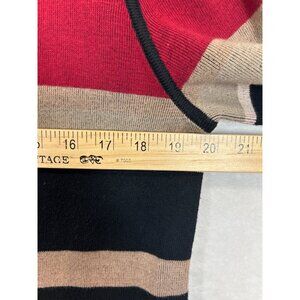 Chicos Cardigan Womens Medium Black Tan Red Striped Longline Open Front