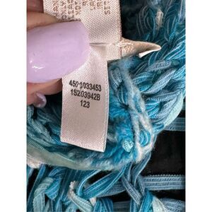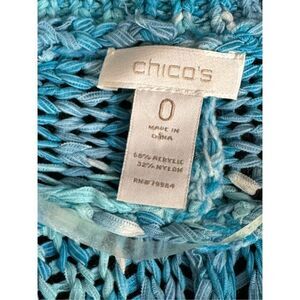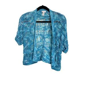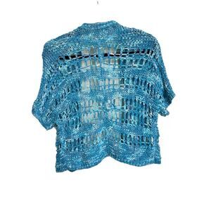 Chicos Cardigan Womens SZ 0 Small 4 Blue Oceanside Short Sleeve Crochet Shrug