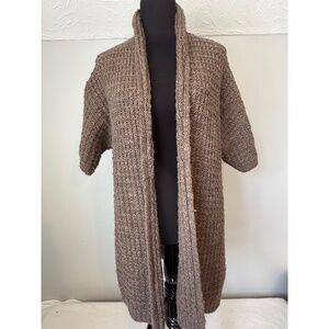 Chico's Cardigan Womens Size 2 Taupe Short Sleeved Chunky Knit Cozy Soft Warm