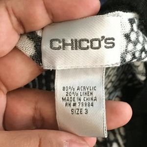 Chicos Cardigan Womens Sz 3 US XL 16 Black White Linen Blend Knit Sweater
