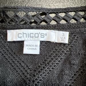 Chico's Cardigan Women's XL Black Open Crochet Lace Lightweight Sheer