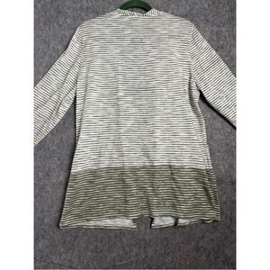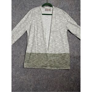 Chico's Cardigan Sweater Women's 2 White Olive Striped Long Sleeve Open Front