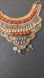 Vintage Chico's Carla, bib style, mix of acrylic and metal beads, Prong set, antique silver tone, gold tone chain and hardware. This necklace is set on a satin fabric back which lays beautifully against the skin. This is a pre-loved piece in wonderful condition, please see photos for measurements and details.