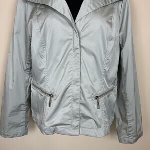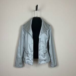 Chico's Carlynn Jacket Front Zip Metallic Sheen Gray Size Large