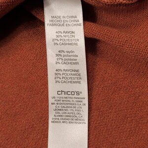 Chico's Cashmere Blend Sz 0 S Sweater Solid Rust Orange Women's Ribbed Pullover