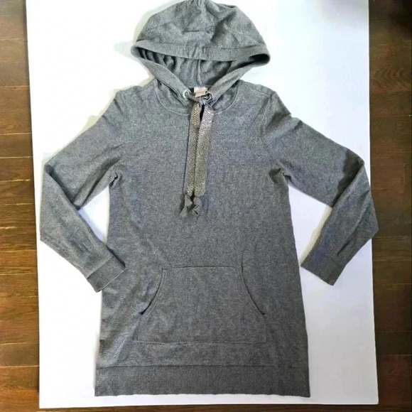 Pretty bedazzled drawstrings gives this Grey sweater just a touch of glam.