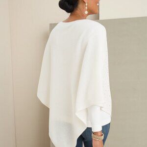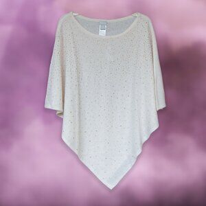 Chicos Cashmere Poncho Sweater Rhinestone Ivory Asymmetrical Wool Bedazzled