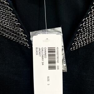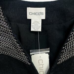 In great preowned condition. Some wear throughout. Actual item for sale photographed, please see photos for details, flaws and measurements. Chico's Chained Galloway Jacket Womens Size 3 Lined Black 3/4 Linen Blend Career