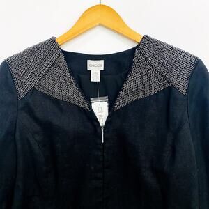 Chico's Chained Galloway Jacket Womens Size 3 Lined Black 3/4 Linen Blend Career