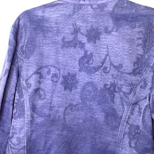Ruffles down the front and around neckline. Embroidery throughout. Machine washable. Very good preowned condition. A Chico size 2 is equivalent to a size medium or 12.