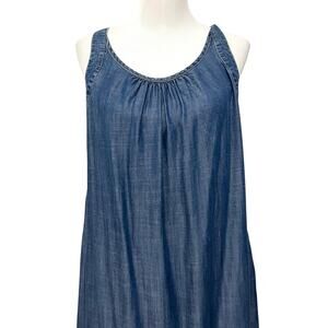 Chico's Chambray Blue Lyocell Maxi Long Tank Dress Tie Dye Hem Pockets Sz M (2). Preowned. Excellent condition. Comes from smoke free home. Ships out fast!