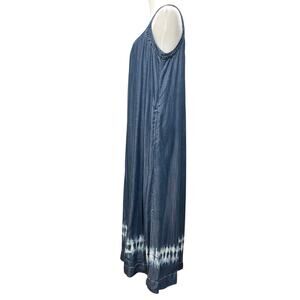Chico's Chambray Blue Tencel Maxi Long Tank Dress Tie Dye Hem Pockets Sz M (2)