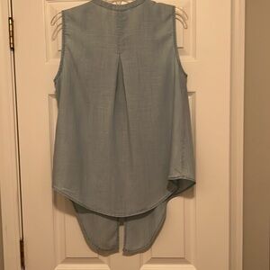 Chicos Chambray Blue Top Size 1 (Medium 10) Sleeveless Button Tie Front Shirt