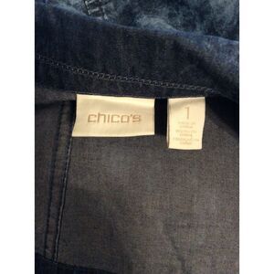 Chico's Chambray Denim Small 8-10 Sleeveless Jacket Zip Up Rhinestone