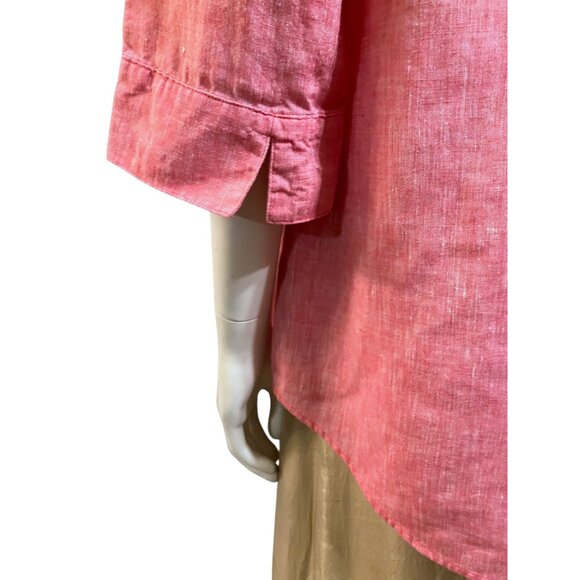 Chico's Chambray Linen Shirt 1 (M) Quarter Sleeves Minimalist Flowy 100% Linen