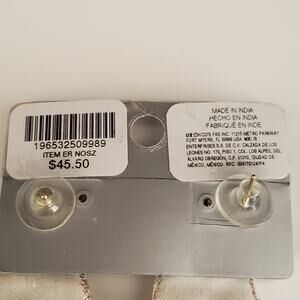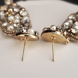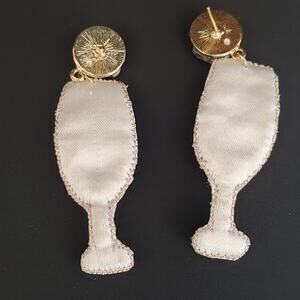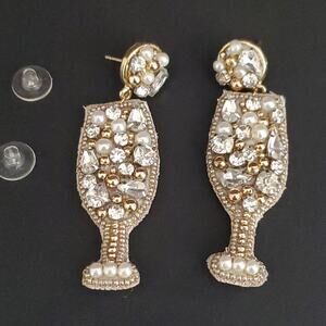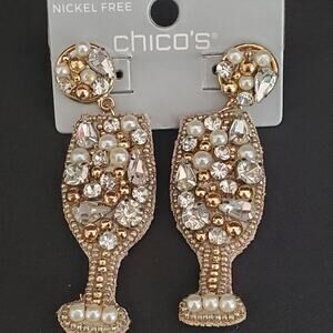 Chico's Champagne Glass Earrings have faux pearls gold tone beads and crystals in a gold tone setting. Beads have been sewn on a fabric base to make these earrings fun and lightweight. New with tags.