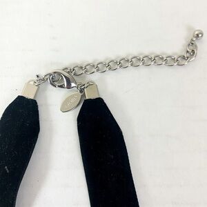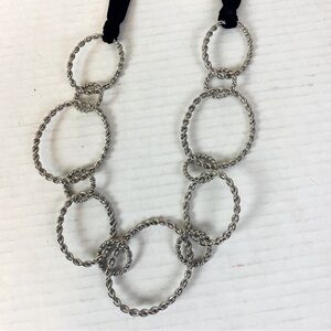 Chico’s Chanelle Silver Twisted Linked Ring Velvet Strap Necklace