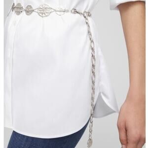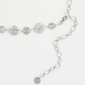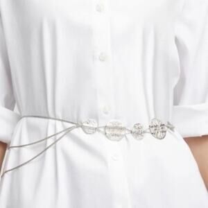 Chico’s Charm Chain Belt – Silver-Tone Statement Accessory Add a touch of glam to any outfit with this stunning silver-tone charm chain belt from Chico’s. Featuring a nostalgic mix of dangling charms and a sleek chain design, this belt is perfect for elevating dresses, skirts, or high-waisted pants.