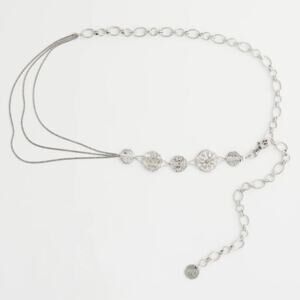 Introducing the latest addition to Chico's accessory line-up, the Chico's Chain Charm Belt. Showcasing a beautiful and nostalgic look including charms. Wear with dresses or pants.