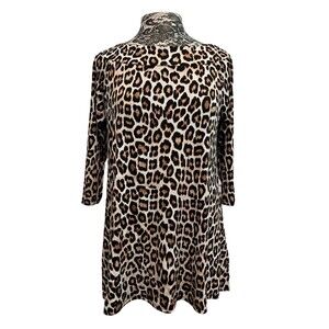 Chico's Cheetah Print Tunic Top Animal Print 3/4 Sleeve Casual Flowy Black 1 S M