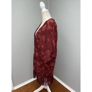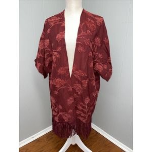 Chico's Chenille Floral Jacquard Ruana L/XL Red Topper Wrap Boho New $119