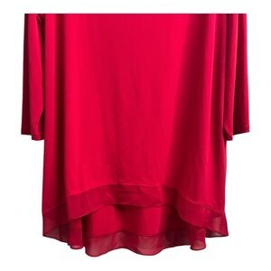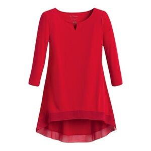 Chicos Cherry Red Demi Woven Mix Knit Top 3/4 Sleeve Hi Lo Hem Women Large