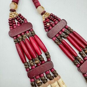 Chico’s Cherry-Colored Bib Necklace Beaded Tribal Boho Tropic Vaca Statement