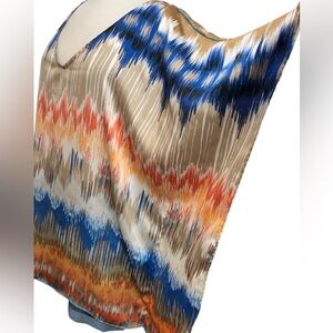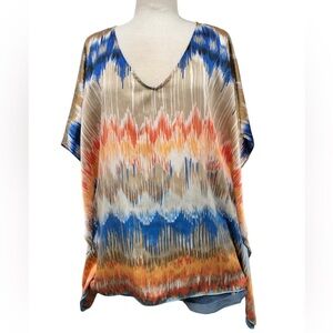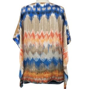 You'll love the breezy feel of this V-Neck Poncho. It has a satiny-soft feel features a striking Chevron print. Wear this poncho with slimming denim or a pair of shorts for a fun ensemble that works for all your outdoor affairs.