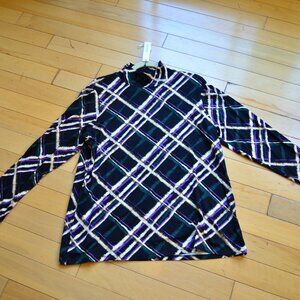 Chico's Chicos Plaid Mock Neck Layering Tee Size 3 XL NWT