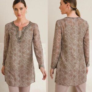 Chico’s Chiffon Embellished Tunic Snake Print Top Size 3 US XL