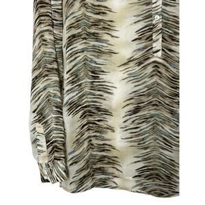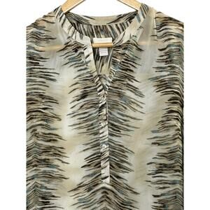 Chico's Chiffon Sheer Feather Print Henley Neck Popover Blouse Women's Medium