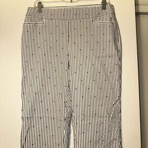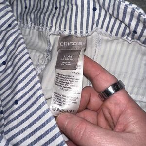 Chicos Chino Pants Blue White Stripe Polka Dots Size 1.5R (10R) EUC