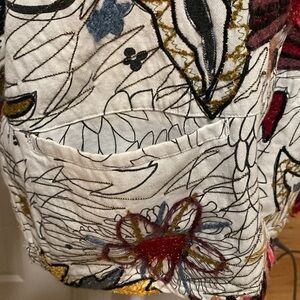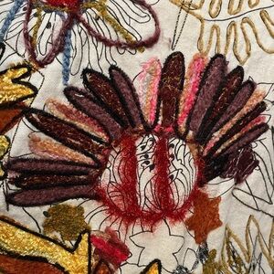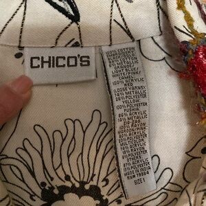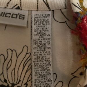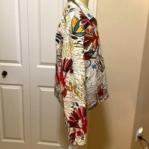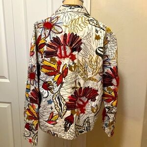 Chico’s Chore Jacket Womens M Floral oversized cottage Artsy Art To Wear